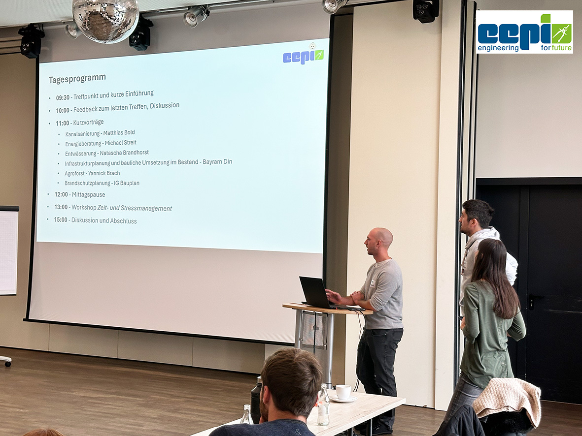 Zum Auftakt hieß Paolino Nola, Geschäftsführer des Bürostandorts Merzig, die Teilnehmenden willkommen und eröffnete die Veranstaltung. Anschließend bot eine gemeinsame Feedbackrunde Raum, das vorherige Treffen zu reflektieren und Ideen für zukünftige Formate zu sammeln. Daraufhin präsentierten sechs Jungingenieure ihre aktuellen Projekte und gaben spannende Einblicke in ihren Arbeitsalltag – von ersten Erfahrungen im Beruf bis hin zu technischen Herausforderungen und individuellen Lösungsansätzen.